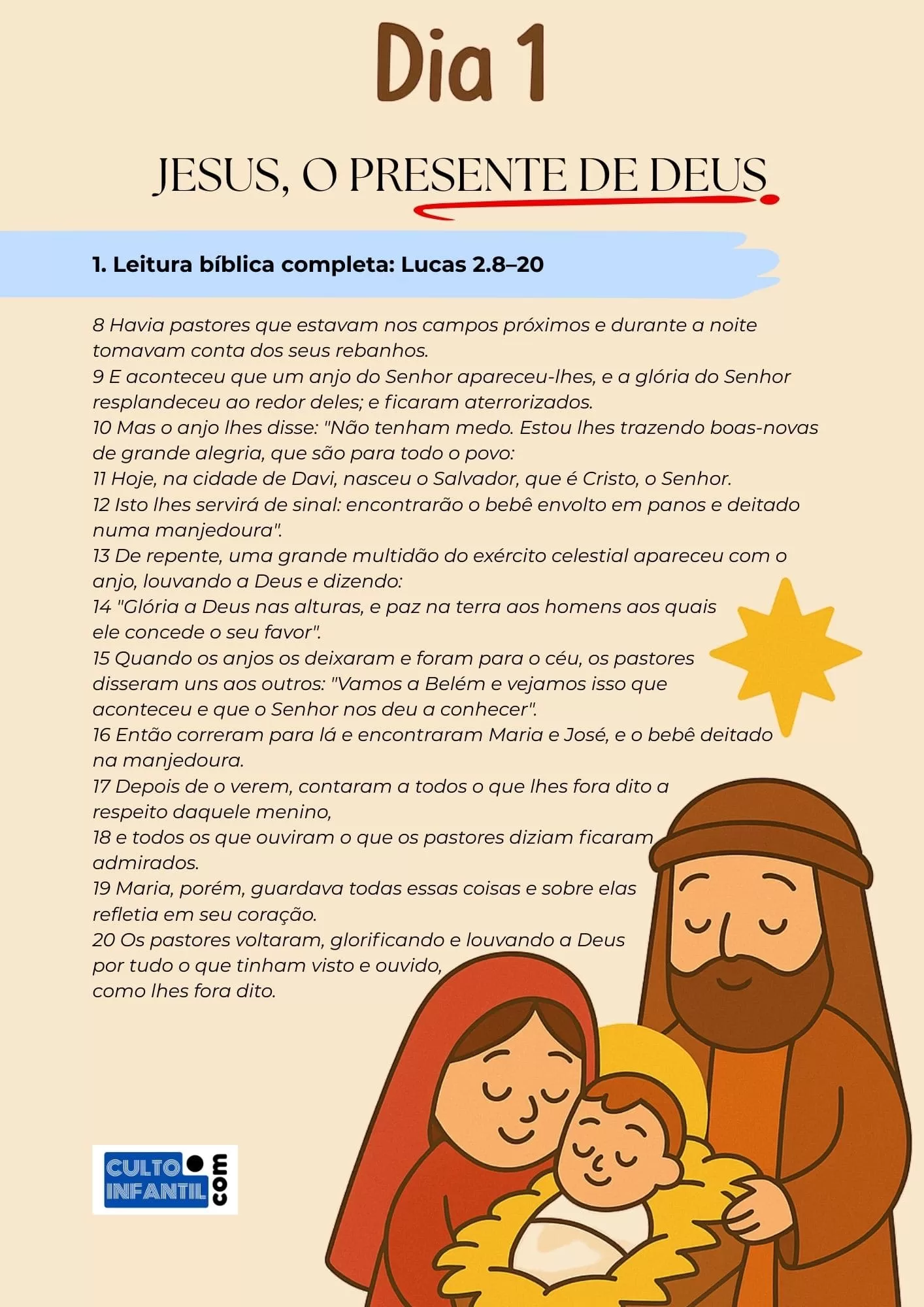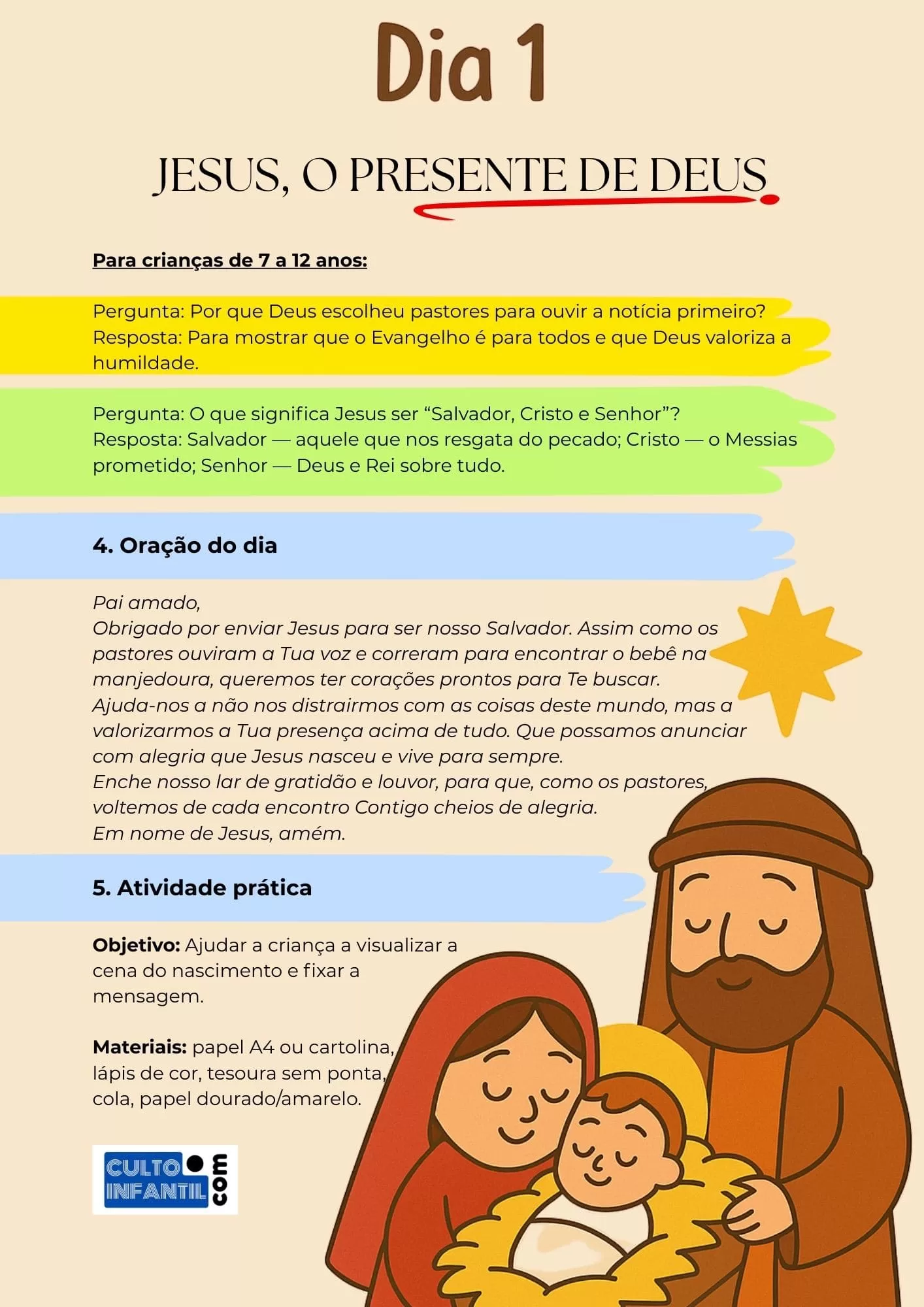 ✔ 12 encontros completos e bíblicos (NVI) sobre a vida e a obra de Jesus — leitura do texto bíblico, reflexão acessível, perguntas, oração, atividade e desafio do dia.